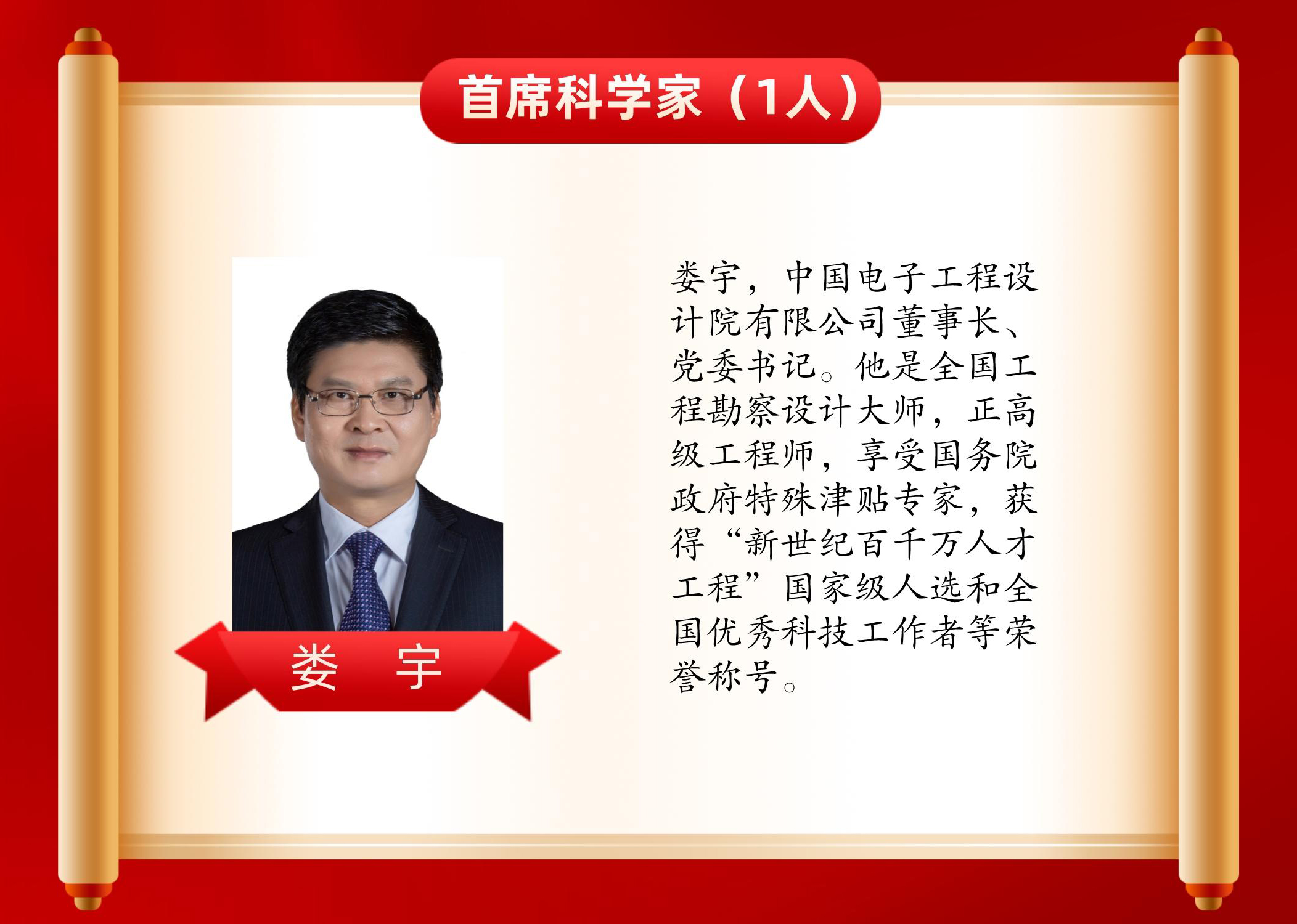 娄宇作为院技术负责人以来,主持和参与了近100项重大工程和27项国家、市、部委科研课题,获国家科技进步奖一等奖1项,二等奖1项,获国家优秀设计金奖1项,银奖4项。其它各类省部级奖项20余项。作为中国电子工程设计院有限公司“博士后科研工作站”专家指导委员会主任和博士后指导专家,先后联合培养博士后8名,博士、硕士研究生近20名。共出版专著10本,发表学术论文近100篇。获得国家授权发明专利和实用新型专利60余项;主编和参编国家和行业标准30多部。