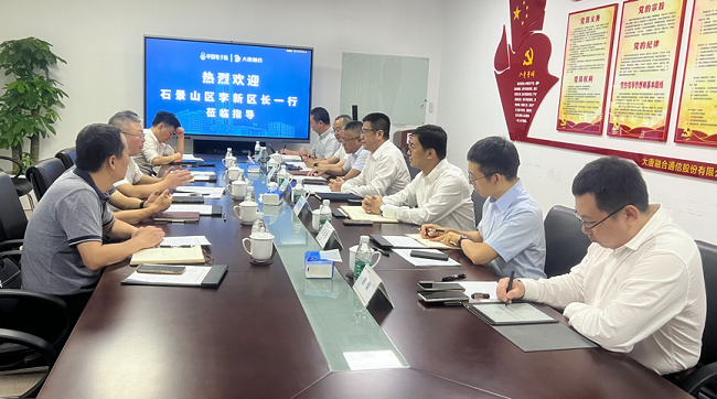 近日,石景山区区委副书记、区长李新,副区长李文化等一行到大唐融合走访调研。中国电子院党委副书记、总经理夏连鲲,副总经理兼大唐融合董事长席京,大唐融合总经理孙绍利,总会计师张思炜陪同调研。
