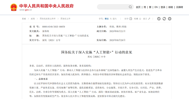 2025年8月21日,国务院下发了《国务院关于深入实施“人工智能 ”行动的意见》(国发〔2025〕11号),明确提出要提升安全能力水平。推动模型算法、数据资源、基础设施、应用系统等安全能力建设,防范模型的黑箱、幻觉、算法歧视等带来的风险,加强前瞻评估和监测处置,推动人工智能应用合规、透明、可信赖。