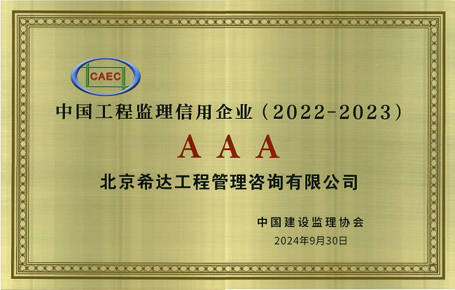 这一荣誉不仅是对希达咨询公司在工程监理领域卓越表现的高度认可,更是企业多年来坚守诚信、追求一流的有力见证。信用是企业宝贵的无形资产,是企业的“诚信名片”。希达咨询公司将以此为契机,进一步加强企业信用管理体系建设,以客户满意为最高目标,提供优质服务,为推动工程监理行业的健康发展做出更大的贡献!